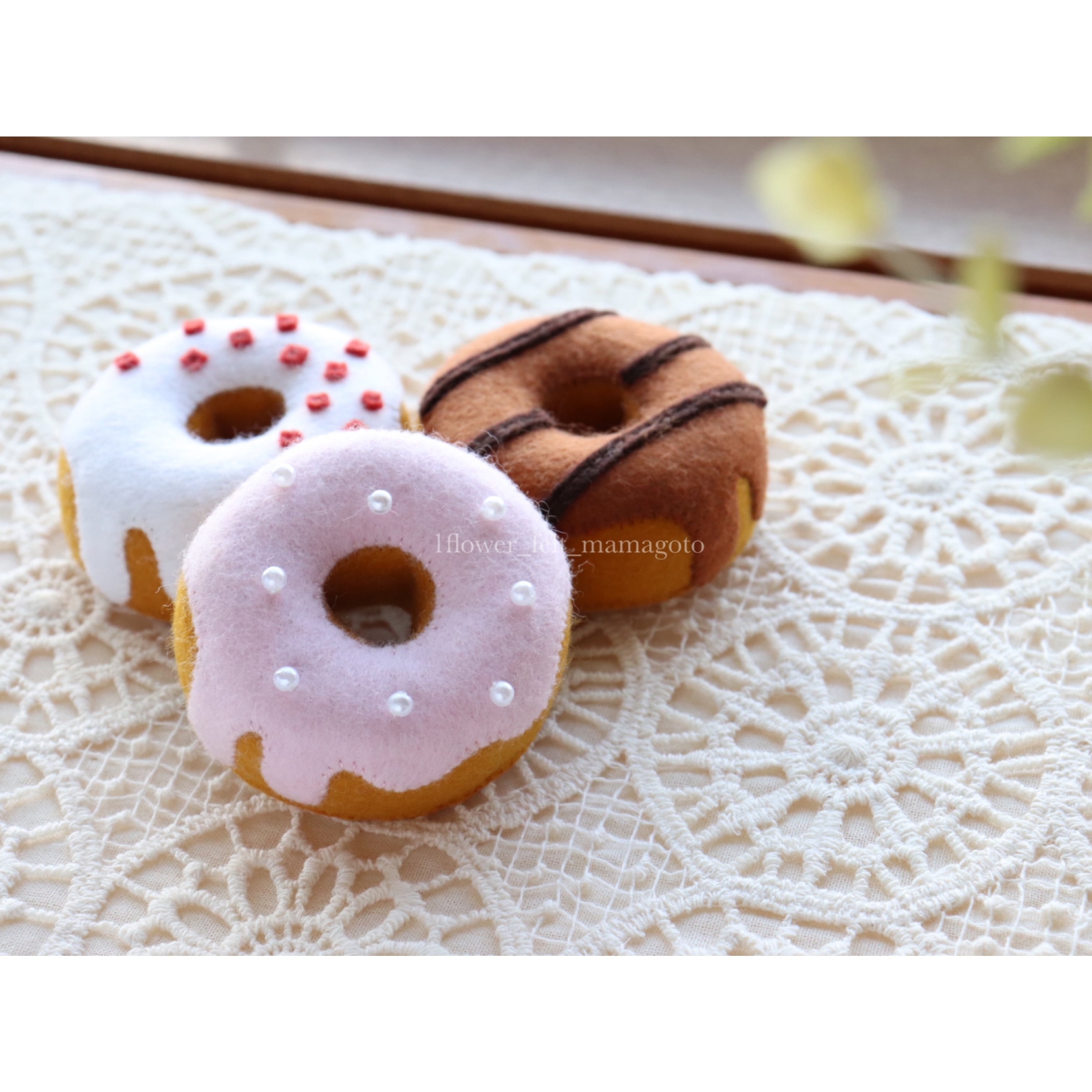 ◼︎ドリンクにお好みのアイスやソフトをトッピング、フードを添えて...お家でオシャレなカフェごっこなんていかがでしょうか♩ドリンクはフェルトカラーを変更するとメニューを増やすことが出来ます。柔らかい透明なカップがポイントです♩